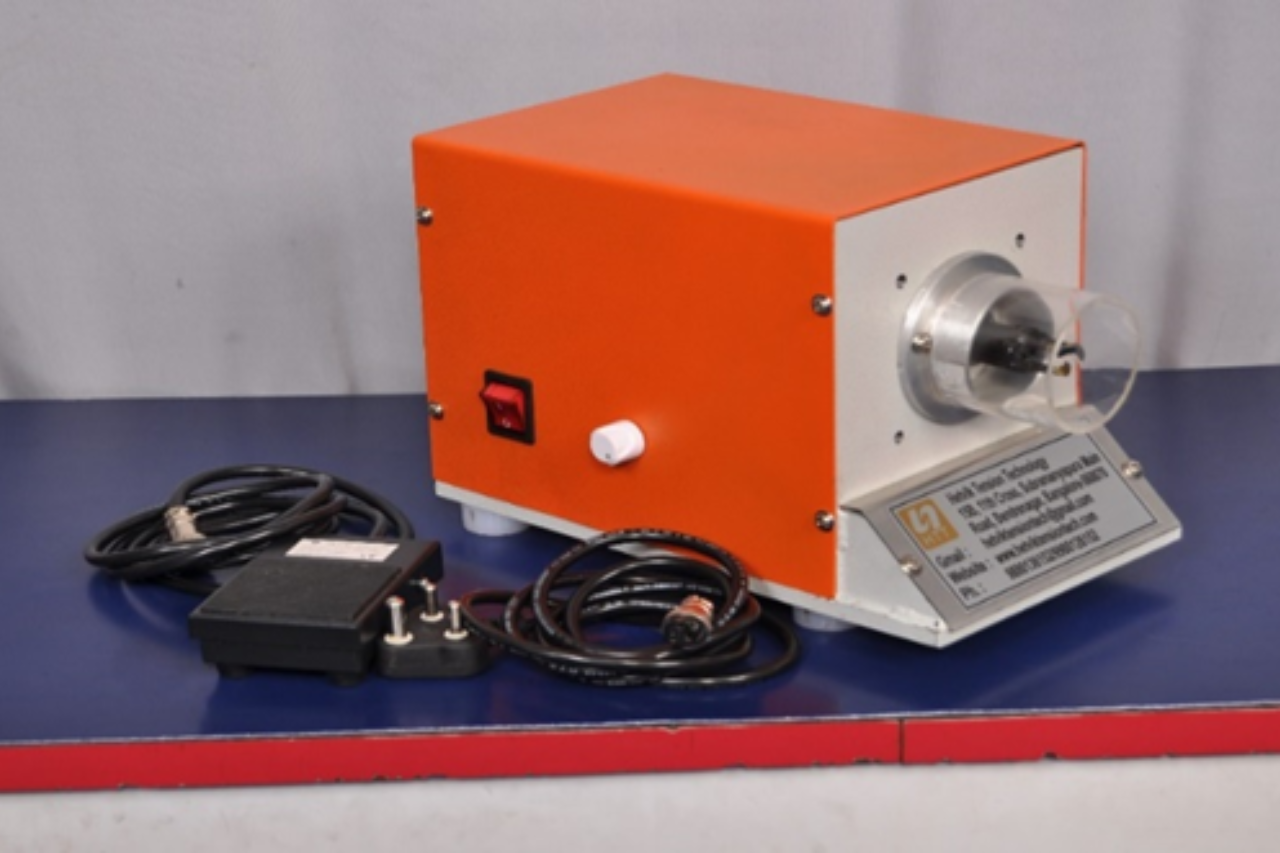 The Finger Type Enamel Wire Stripper is an electrically driven stripping machine with Foot Pedal operation for varnished wires. It consists of a motor unit and a knife head. The knife head is equipped with 3 carbide blades. The blades are closed by rotation (centrifugal force).The speed is regulated via a controller and thus the pressing force of the blades is adjusted for every individual material thickness. The working piece had to be inserted between the non-operating blades – switch on the Finger Type Enamel Wire Stripper (using the red thumb bottom) then draw out the stripped wire.